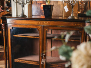 • Superb Quality Inlaid Amboyna with Brass Oralee 2 Door Bookcase