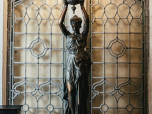Set of 3 Monumental Brass Glazed Cylindrical Hall Lanterns