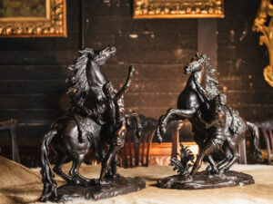 Pair of Early 20th C Bronze Marly Horsemen Sculptures