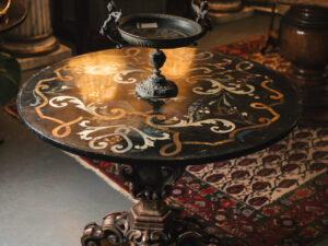 19th C Italian Carved Silver Gilt and Scagliola Topped Cocktail Table