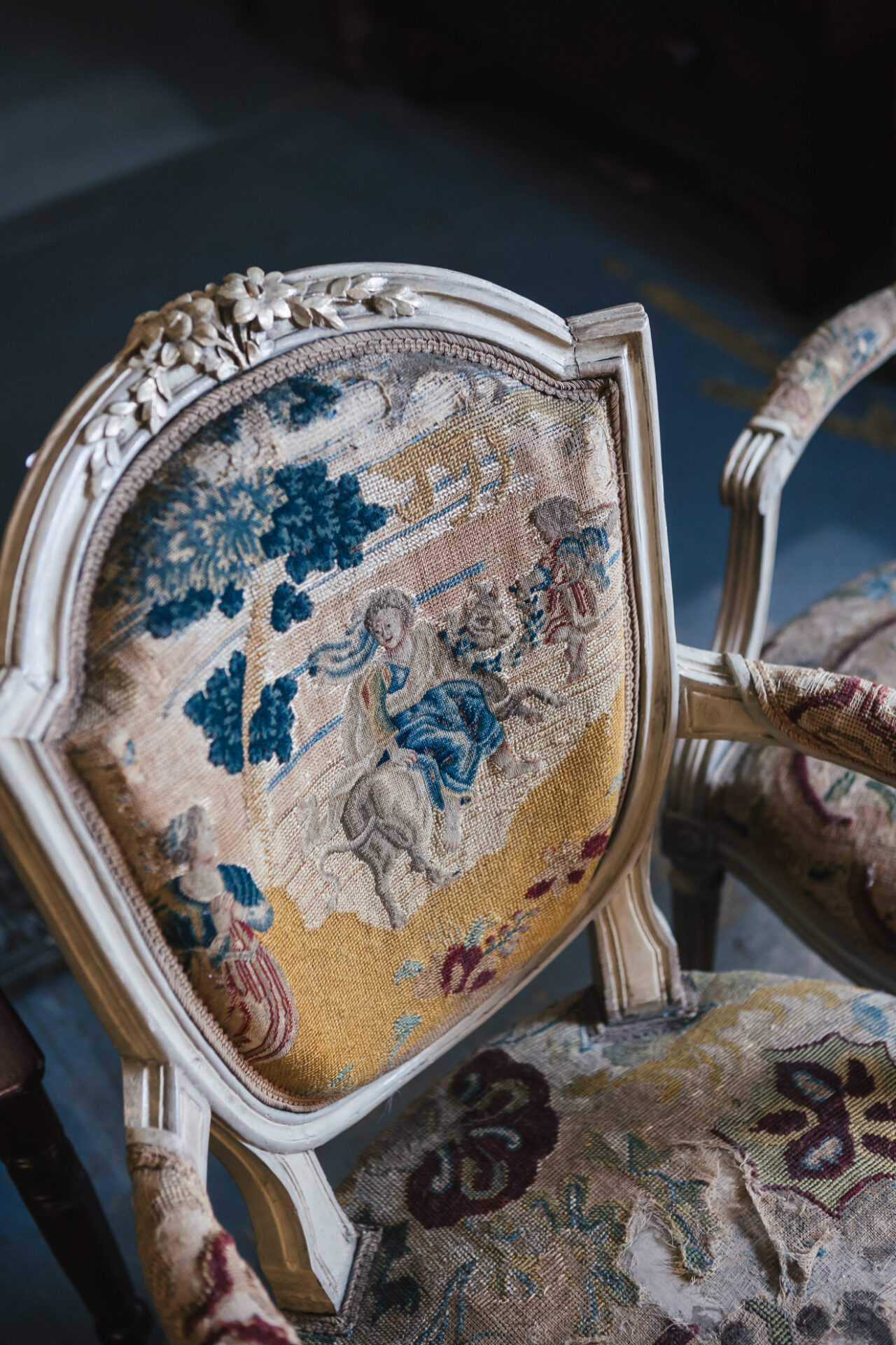 19th Century Painted Pine Continental Salon Chairs with Antique Needlework