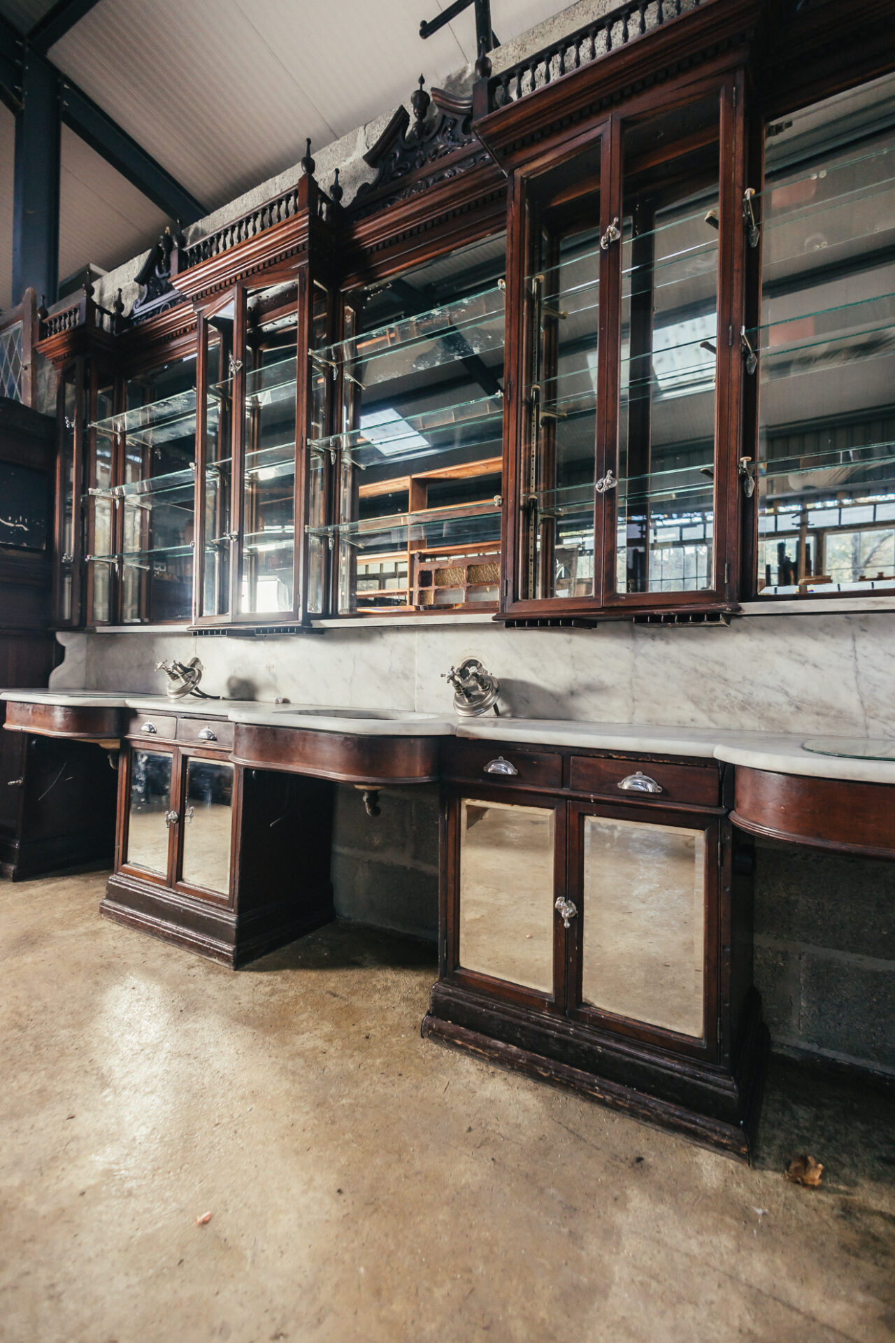 Early 19th Century Carved Mahogany, Mirrored Back, Marble Topped, 3 Stand Barbers Unit Ex. Co. Tipperary