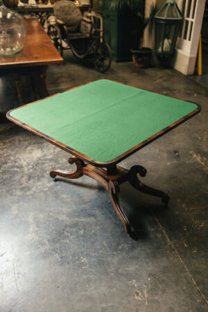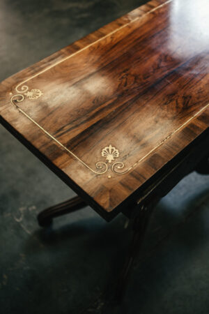 Irish 19th Century Rosewood and Inlay Brass Fold Over Tea Table