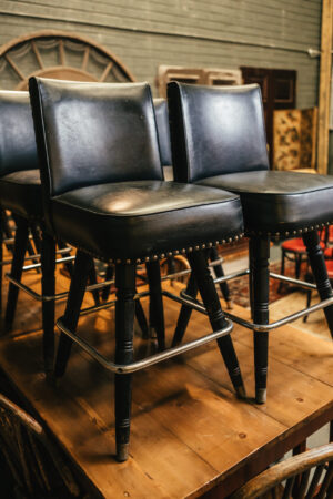 Mid Century Black Leather Bar Stools