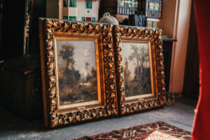 Pair of Early 19th Century Carved Gilt Wood Framed Oil Painting of Landscapes
