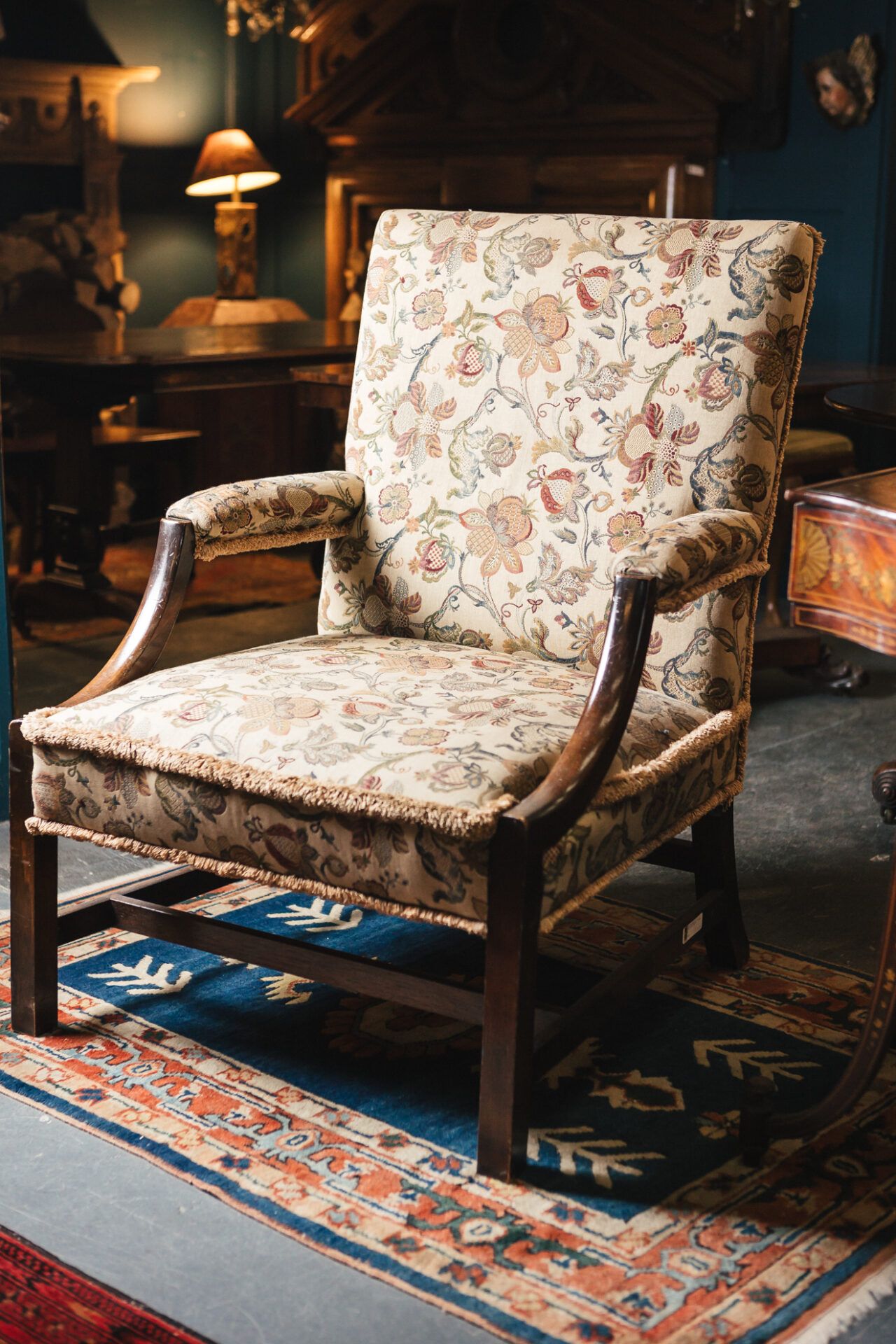 Early 20th Century Double Wing Back Chair in Leather Upholstery